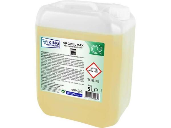 VP Grill Max Ağır Yağ ve Kir Çözücü Heavy Grease and Dirt Remover Profesyonel mutfaklarda ağır yağlı paslanmaz çelik yüzeylerin temizliğinde kullanılan üstün nitelikli ağır yağ ve kir sökücü temizlik ürünüdür. • Kuvvetli alkali formülü ile fırın, ocak, ızgara, grill gibi mutfak ekipmanlarında oluşan yağ birikimlerini zahmetsizce çözer. • Hızlı ve etkilidir. • Rahatsız edici gaz çıkarmaz. • Sadece paslanmaz çelik yüzeyler için uygundur. • Kaynatma ve daldırma uygulamalarında kullanılabilir. Heavy Grease and Dirt Remover Removes any heavy grease and stains on the kitchen. Thanks to strong alkali formulation, it easily erases all stubborn grease and protein residus on kitchen ware.